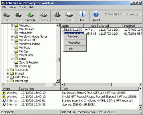 | Программа №2 Active@ File Recovery Эта прога поможет восстановить файлы с отформатированной флешки, или просто удалённые файлы с флешки. Как ни странно, нашлись даже файлы, которые удалили две недели назад и забыли уже про них, причём файлы с довольно внушительным размером. Смотри на скриншоте. Вобщем эта прога будет помощнее той которая выше КАЧАЕШЬ ТУТ 2.49MB