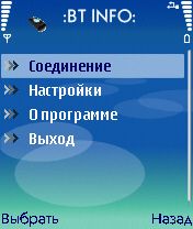 Версия BT Info 1.07 для смартфонов Nokia S60 3rd Edition Devices