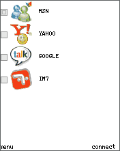 IM-Seven v1.1 поддерживает MSN® & Yahoo® & Google Talk® & IM-SEVEN© Messaging сервисы. - подключается к одной или сразу ко всем выбраним системам - отображение контактов online/offline статуса - отображение аваторов контактов (offline контакты серого цвета) - добавление/удаление контактов - автоматический обновления лист контактов - поддержка смайлов - передача фото и видео с вашего телефона - получение фото и видео - MSN, YAHOO, IM-SEVEN конференции - мобильные игры