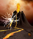 Заставка. Красивейший вулкан извергает лаву и переодически выбрасывает камни бьющие экран вашего смарта :) (виртуально)