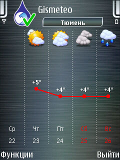 После этого выбираем Функции/Обновить и получаем прогноз погоды в соотв. с настройками: