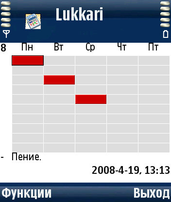 Рабочий экран программы состоит из таблицы, столбцы которой эквивалентны дням недели от понедельника до пятницы, а по строкам расположилась временная разметка, диапазон которой варьируется от восьми до семнадцати часов. Изменить интервал времени нельзя, поэтому будущим пользователям программы придется ужимать свое расписание в заданные рамки. Перед составлением расписания необходимо сначала вбить в память приложения все учебные занятия текущего семестра, а затем раскидать их по недельной таблице, пометив каждое своим цветом. Например-