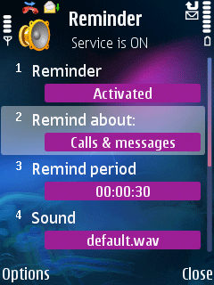 Есть настройки для выбора пропущенных событий, выбора сигнала, периодичности подачи напоминания.
