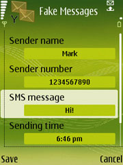 Fake Messages бесплатная программа, которая может создать фальшивое СМС сообщение и поместить его в папку "входящие" на Вашем мобильном телефоне. В программе можно задать имя отправителя, его мобильный телефон и сам текст сообщения.